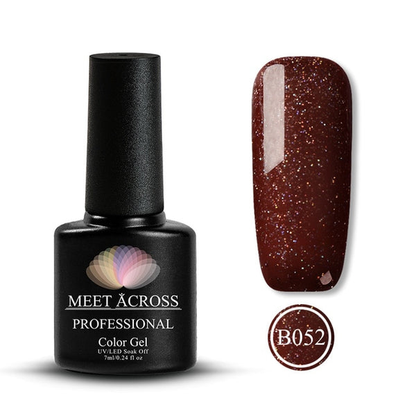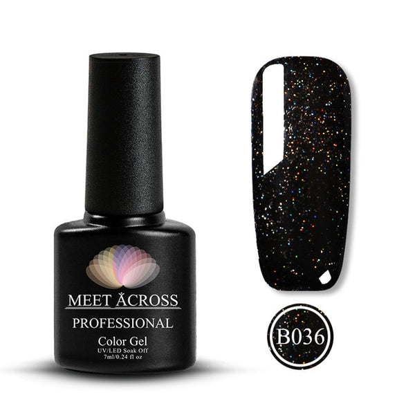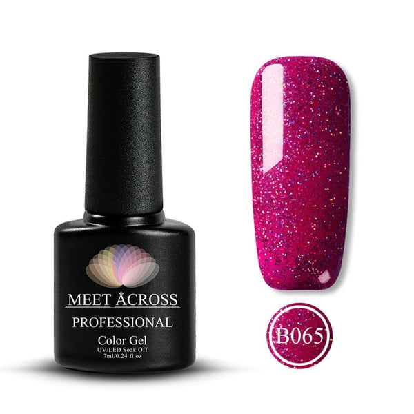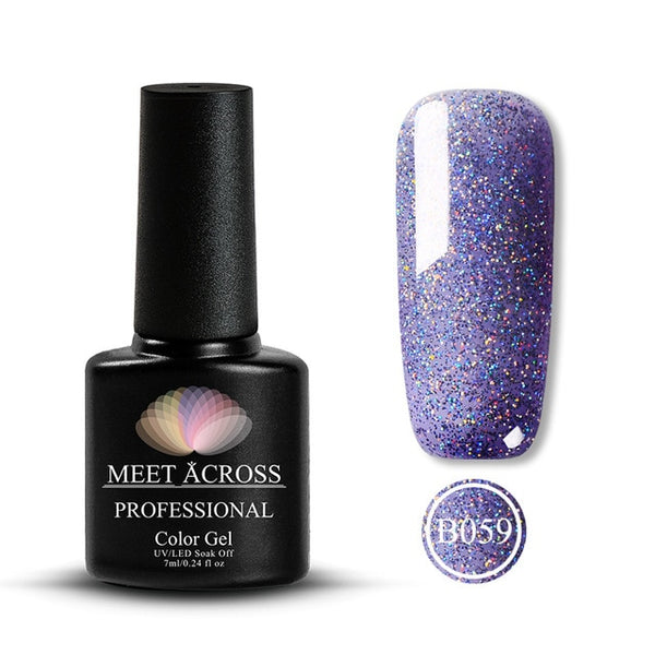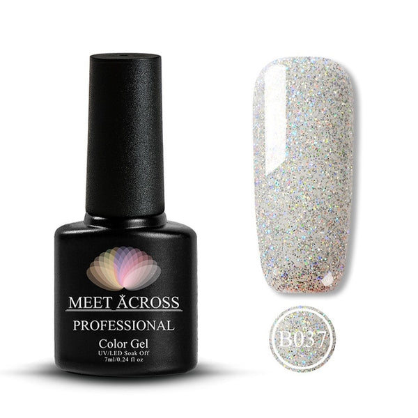 MEET ACROSS 7ml Nail Polish Holographic Glitter Platinum UV Nail Gel Polish Shine Shimmer Manicure Soak Off Nail Art Varnish